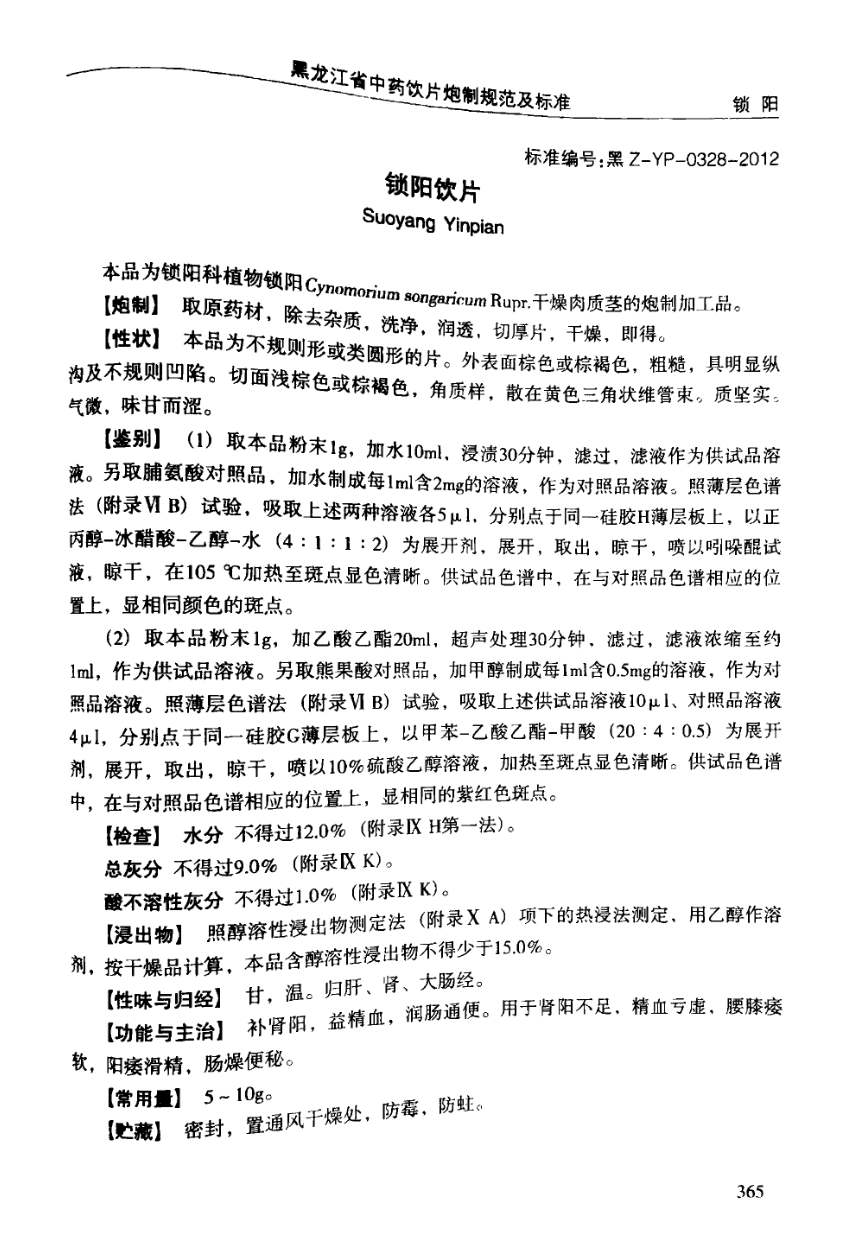 (黑龙江省中药饮片炮制规范及标准 - 2012年版)