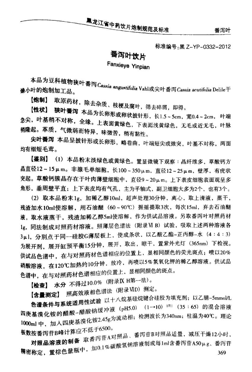 (黑龙江省中药饮片炮制规范及标准 - 2012年版)