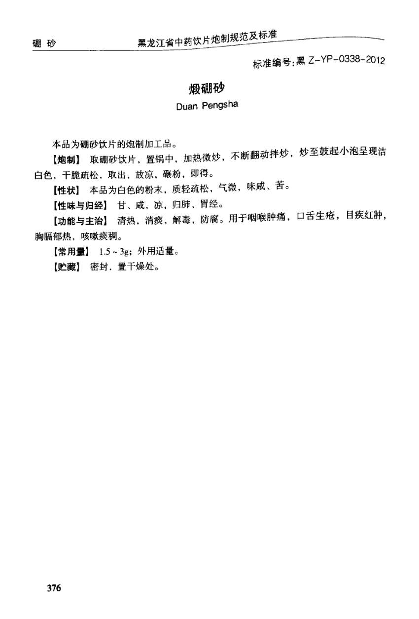 黑龙江省中药饮片炮制规范及标准 > 煅硼砂