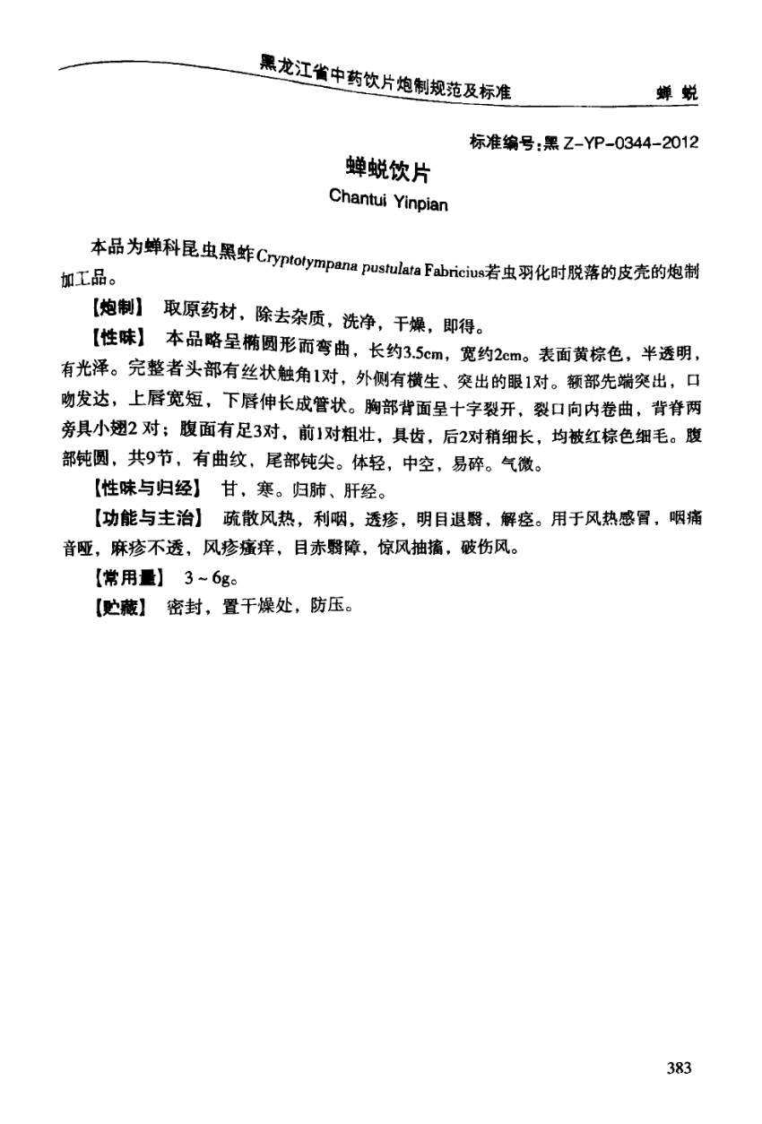 黑龙江省中药饮片炮制规范及标准 > 蝉蜕饮片