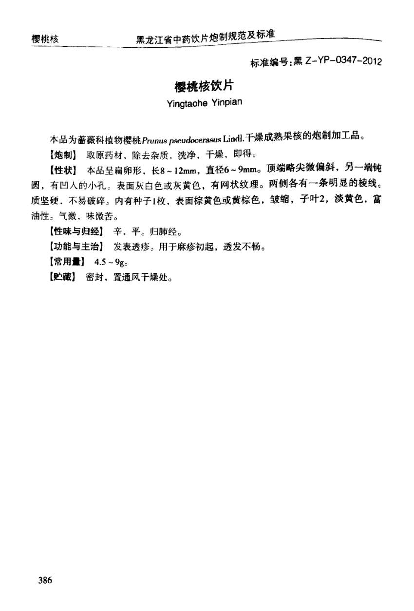 (黑龙江省中药饮片炮制规范及标准 - 2012年版)