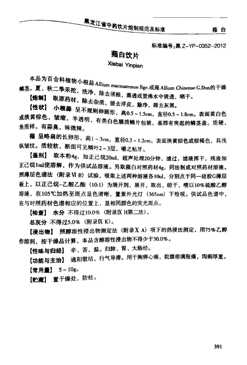 (黑龙江省中药饮片炮制规范及标准 - 2012年版)