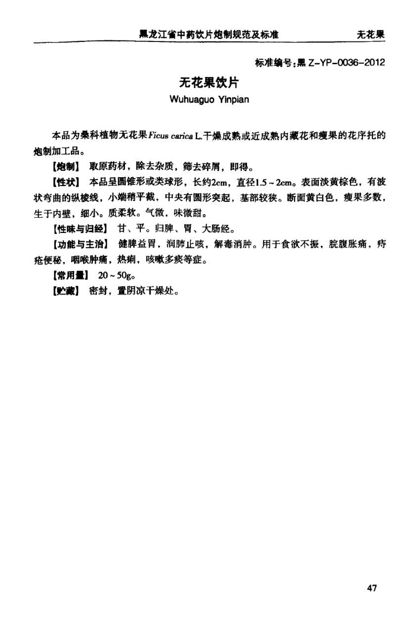 黑龙江省中药饮片炮制规范及标准 > 无花果饮片