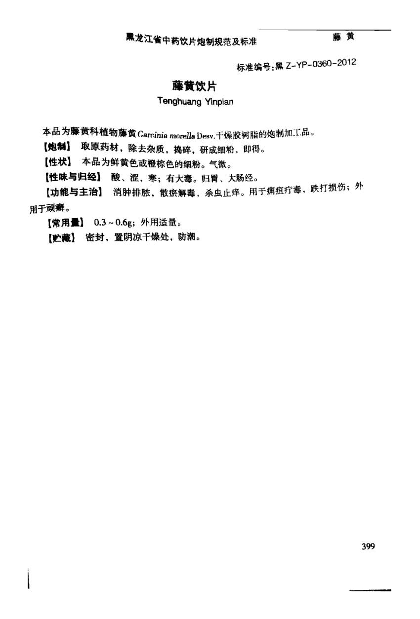 黑龙江省中药饮片炮制规范及标准 > 藤黄饮片
