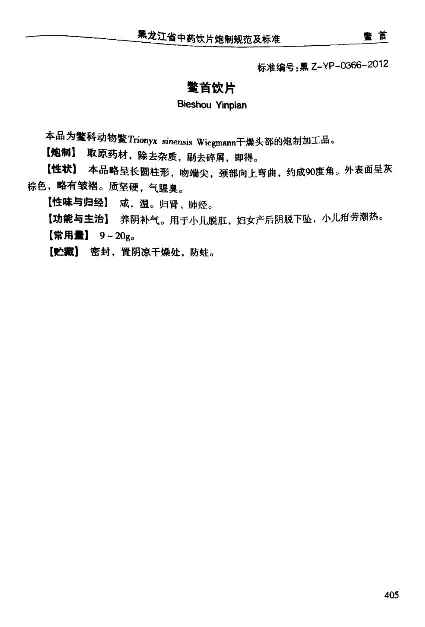 黑龙江省中药饮片炮制规范及标准 > 鳖首饮片