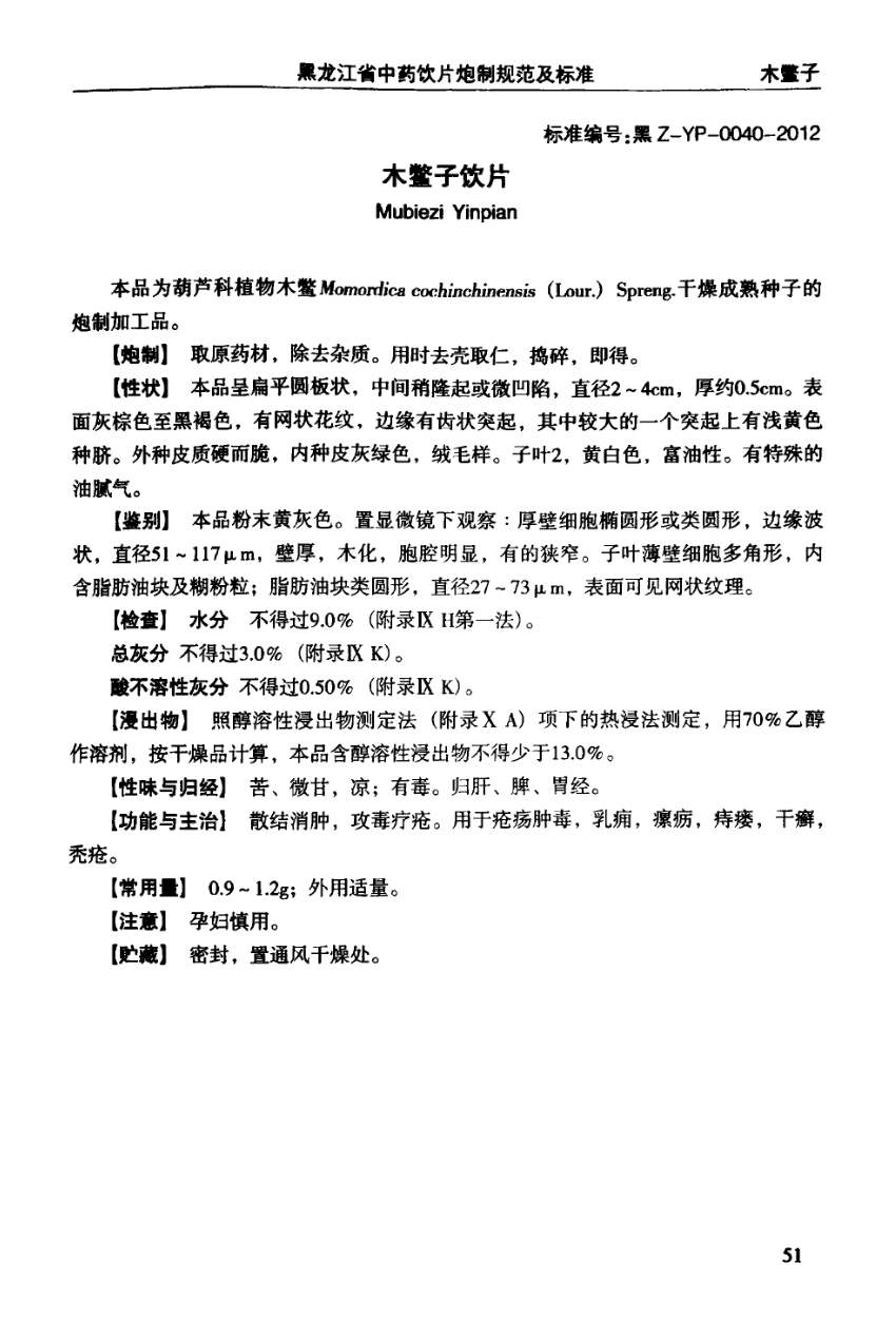 (黑龙江省中药饮片炮制规范及标准 - 2012年版)
