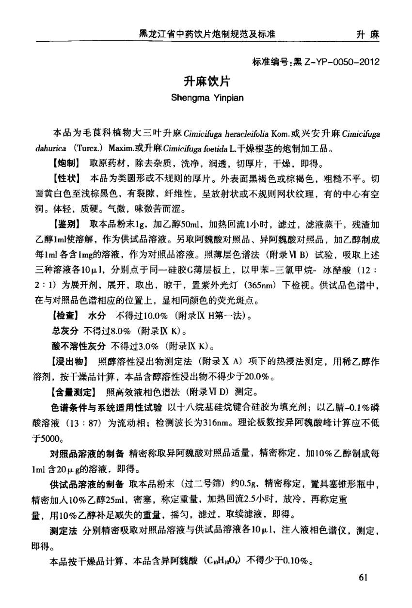 (黑龙江省中药饮片炮制规范及标准 - 2012年版)