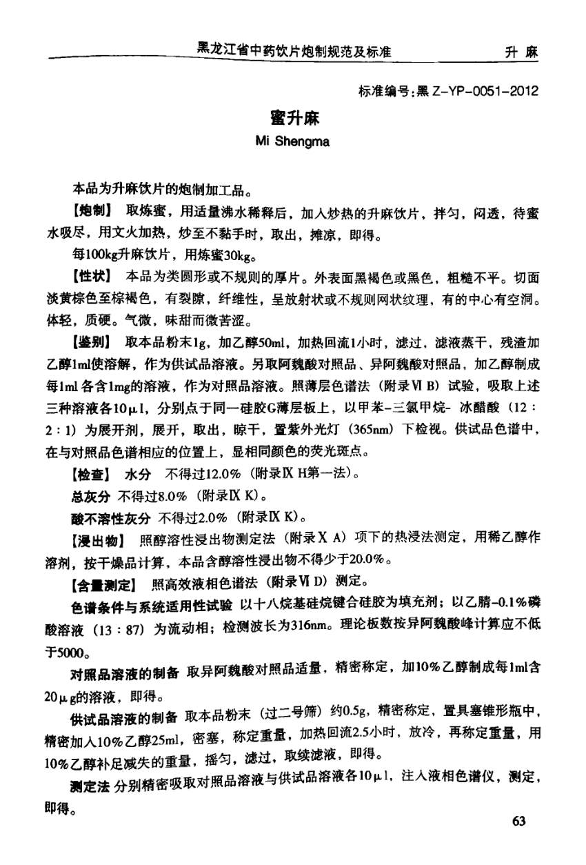 黑龙江省中药饮片炮制规范及标准 > 蜜升麻