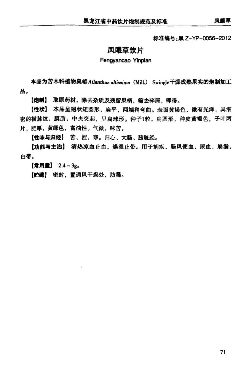 (黑龙江省中药饮片炮制规范及标准 - 2012年版)