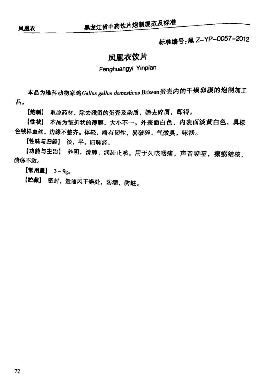 黑龙江省中药饮片炮制规范及标准 > 凤凰衣饮片