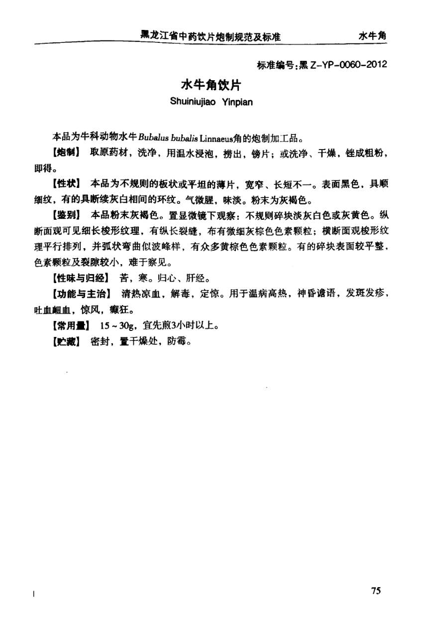黑龙江省中药饮片炮制规范及标准 > 水牛角饮片