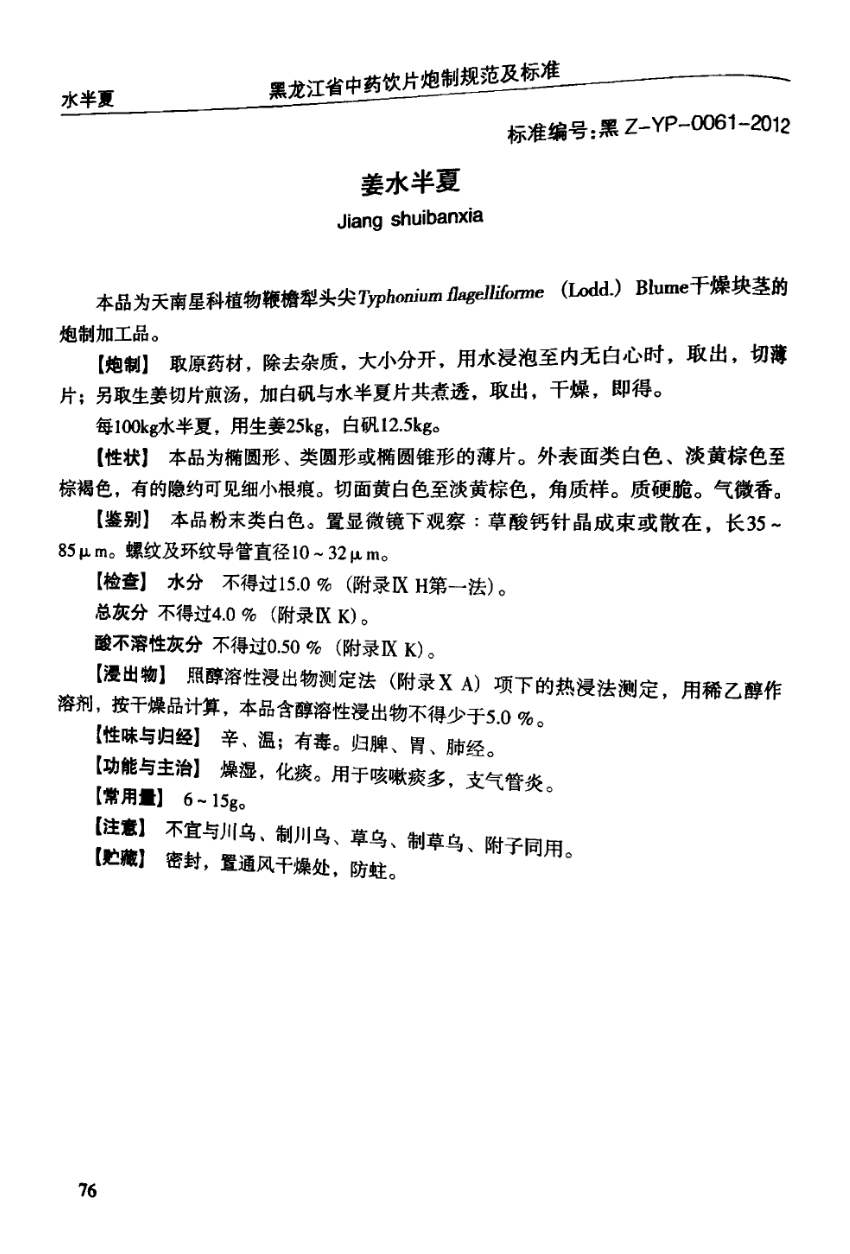 黑龙江省中药饮片炮制规范及标准 > 姜水半夏