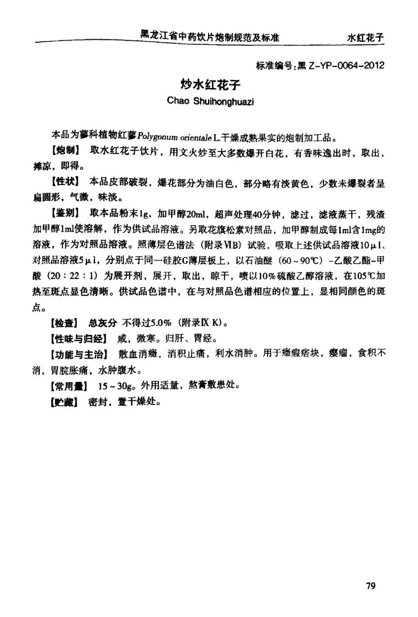 黑龙江省中药饮片炮制规范及标准 > 炒水红花子