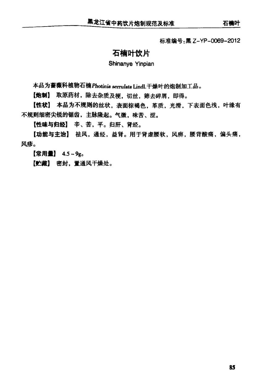 黑龙江省中药饮片炮制规范及标准 > 石楠叶饮片