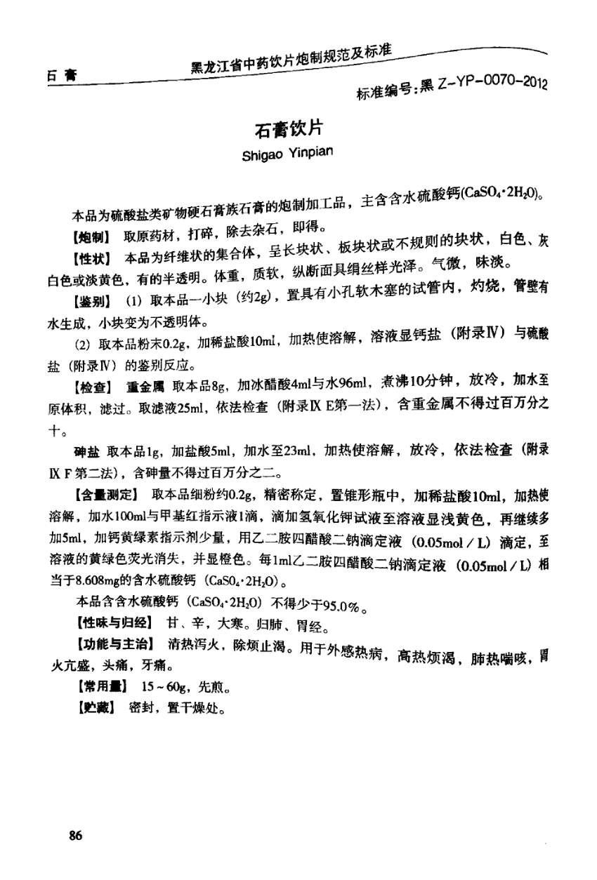 黑龙江省中药饮片炮制规范及标准 > 石膏饮片