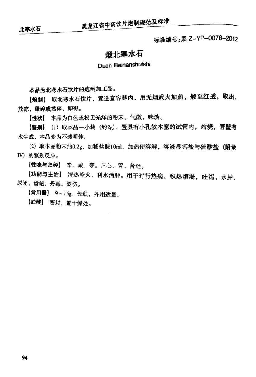 (黑龙江省中药饮片炮制规范及标准 - 2012年版)