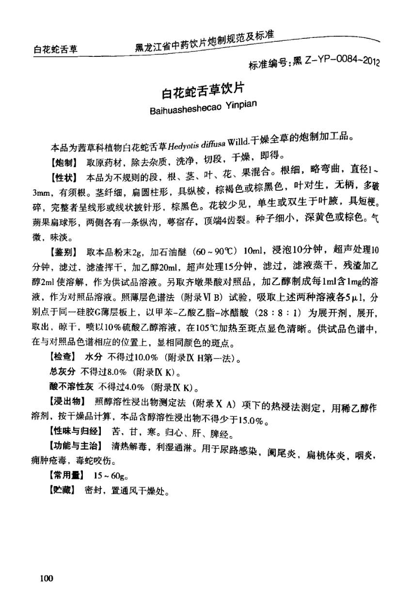 黑龙江省中药饮片炮制规范及标准 > 白花蛇舌草饮片
