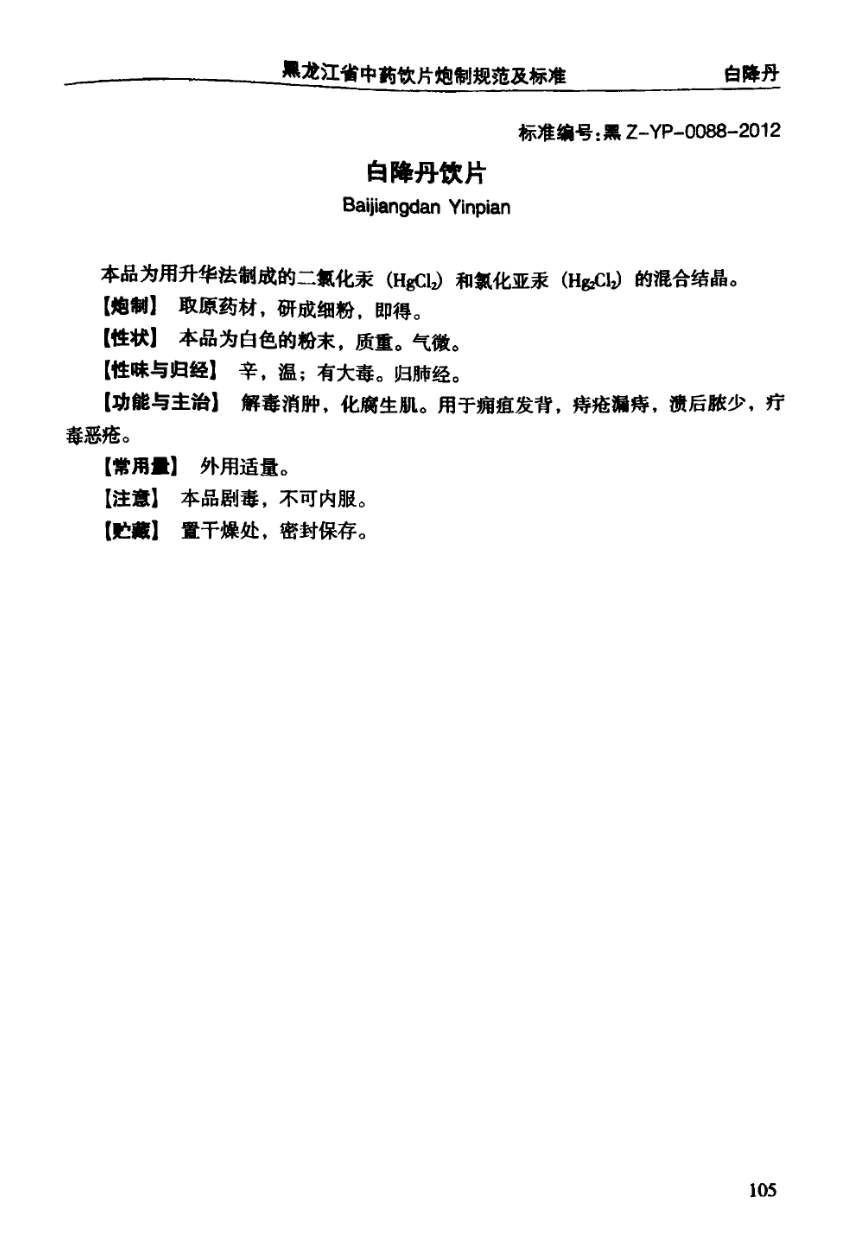 (黑龙江省中药饮片炮制规范及标准 - 2012年版)