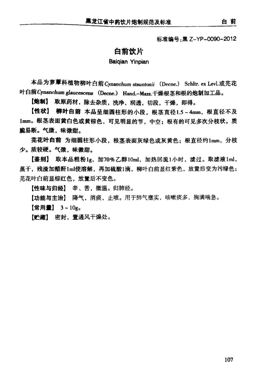 (黑龙江省中药饮片炮制规范及标准 - 2012年版)
