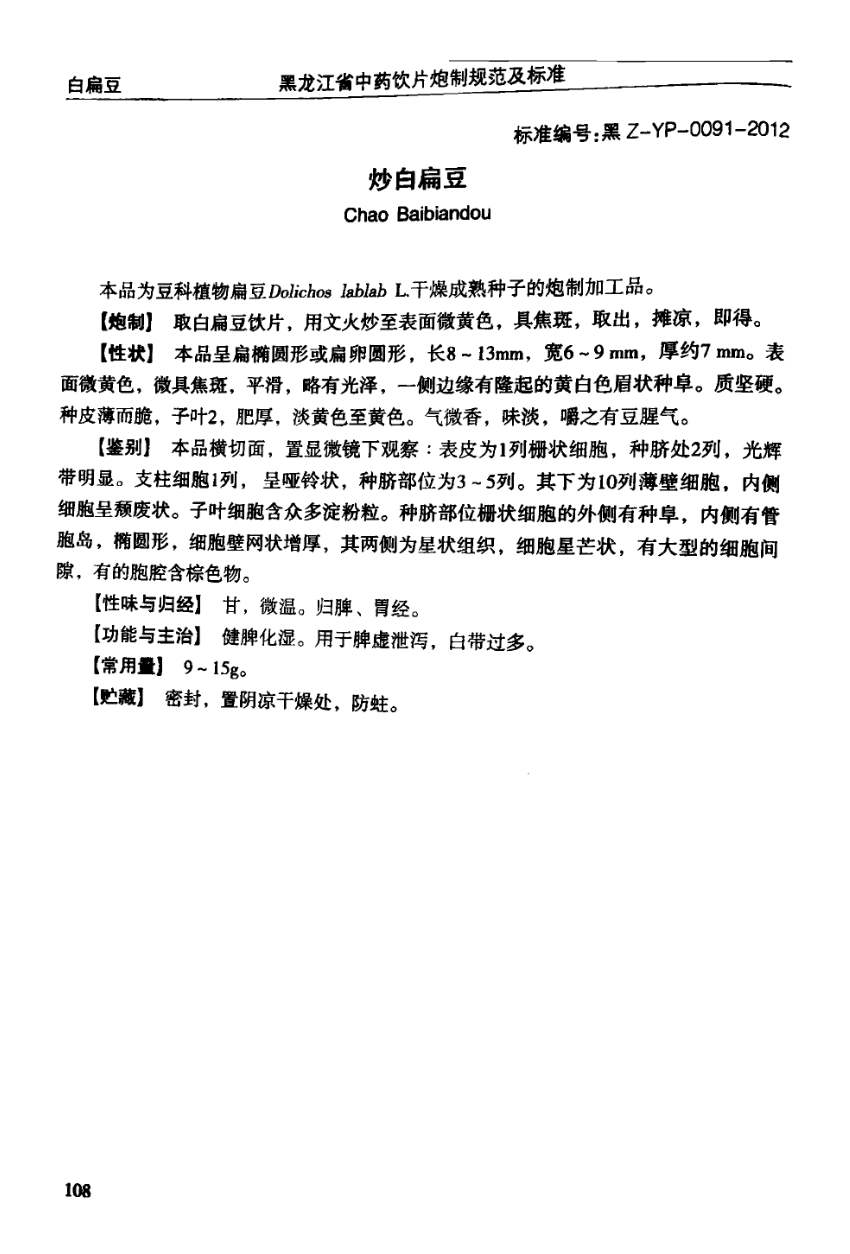 黑龙江省中药饮片炮制规范及标准 > 炒白扁豆