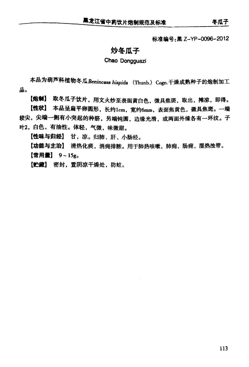 黑龙江省中药饮片炮制规范及标准 > 炒冬瓜子