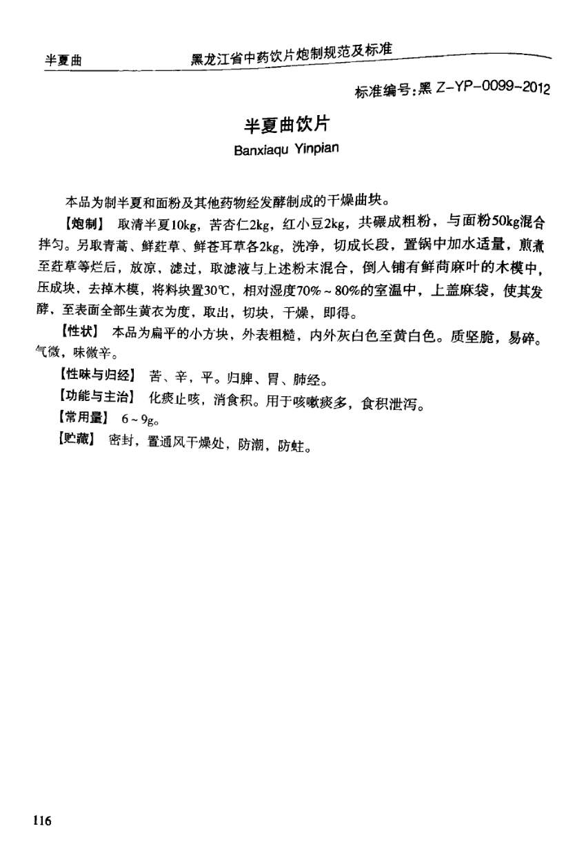 黑龙江省中药饮片炮制规范及标准 > 半夏曲饮片