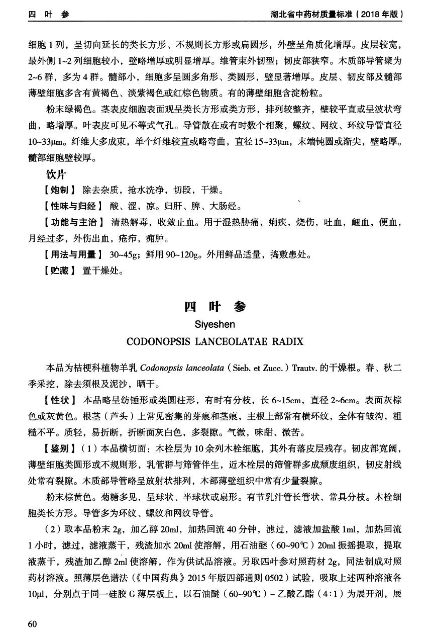 (湖北省中药材质量标准 - 2018年版)