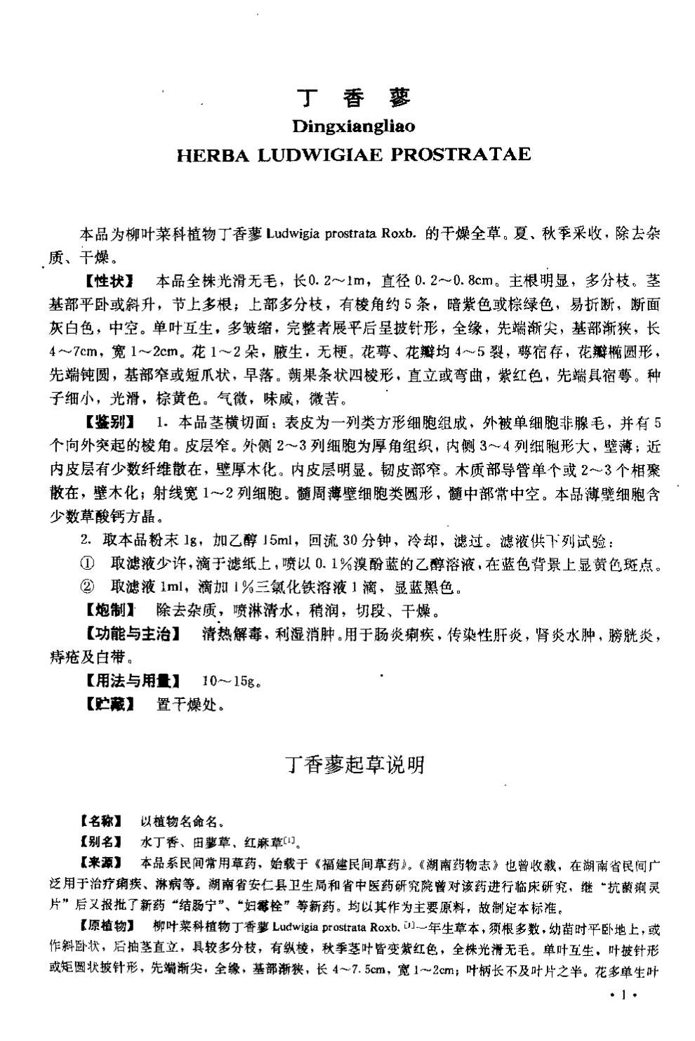 湖南省中药材质量标准 > 丁香蓼