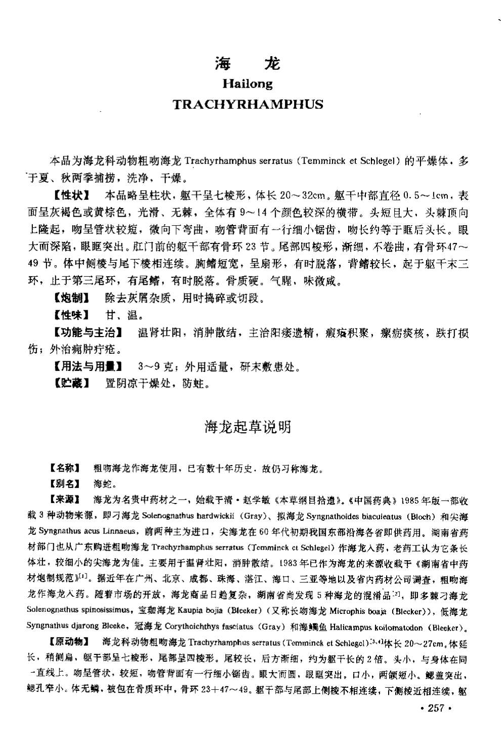 湖南省中药材质量标准 > 海龙