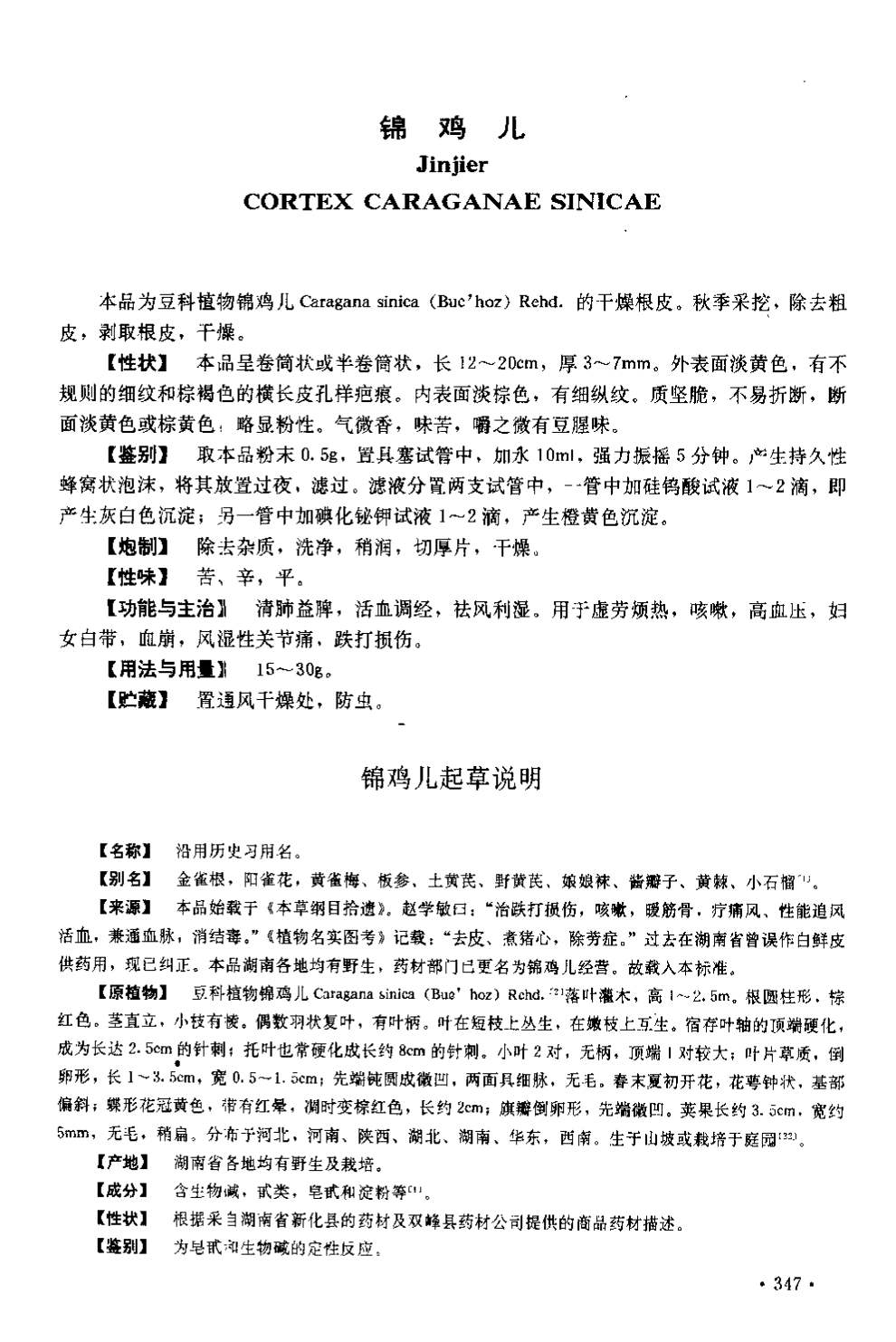 湖南省中药材质量标准 > 锦鸡儿