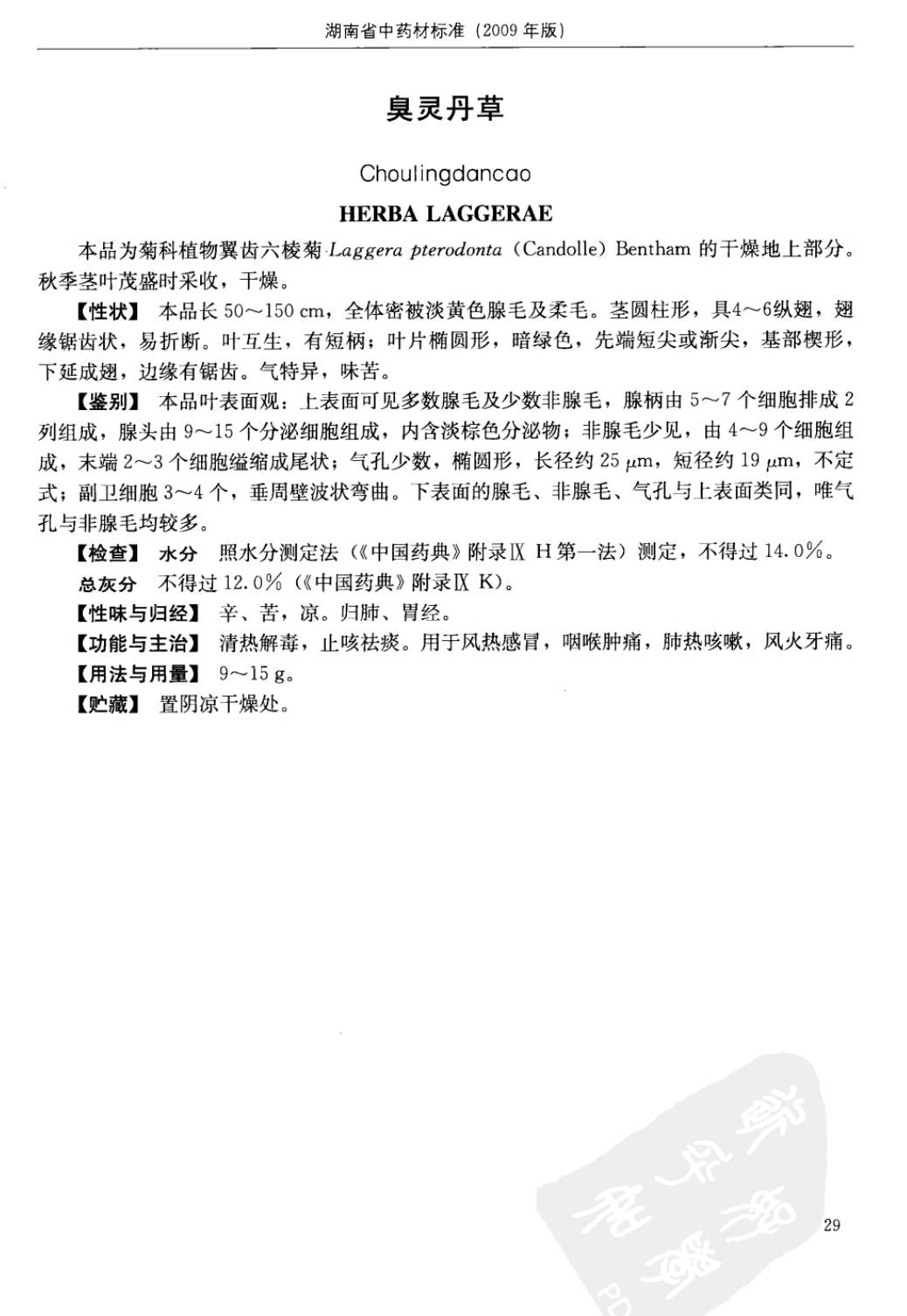 (湖南省中药材质量标准 - 2009年版)
