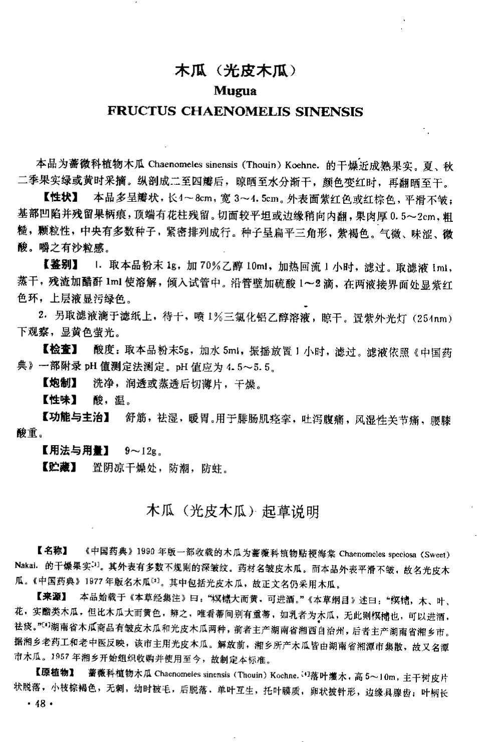 湖南省中药材质量标准 > 木瓜(光皮木瓜)