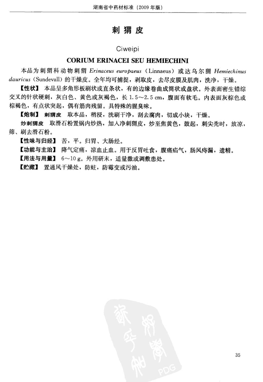 湖南省中药材质量标准 > 刺猬皮