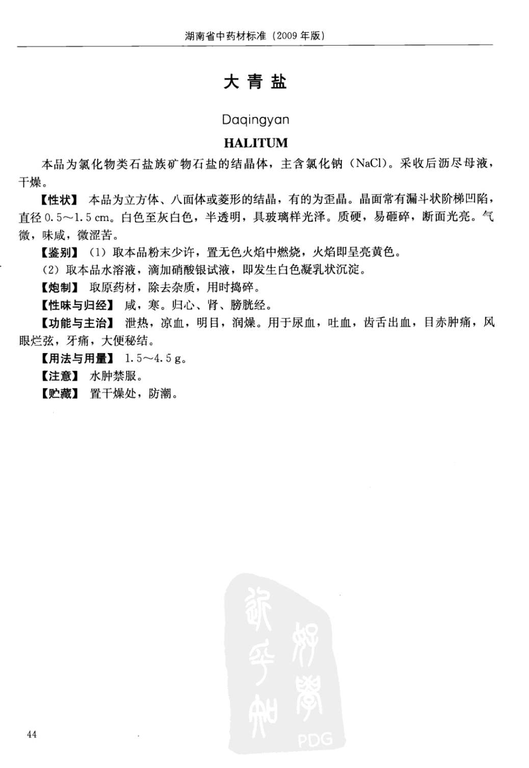 湖南省中药材质量标准 > 大青盐