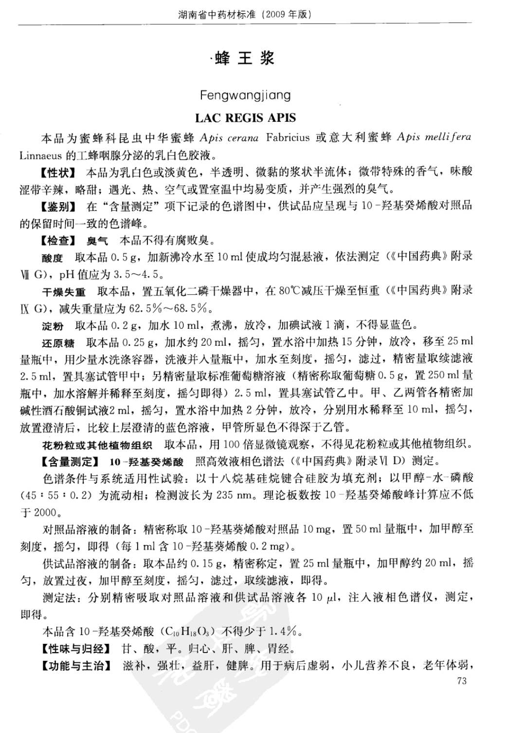 湖南省中药材质量标准 > 蜂王浆