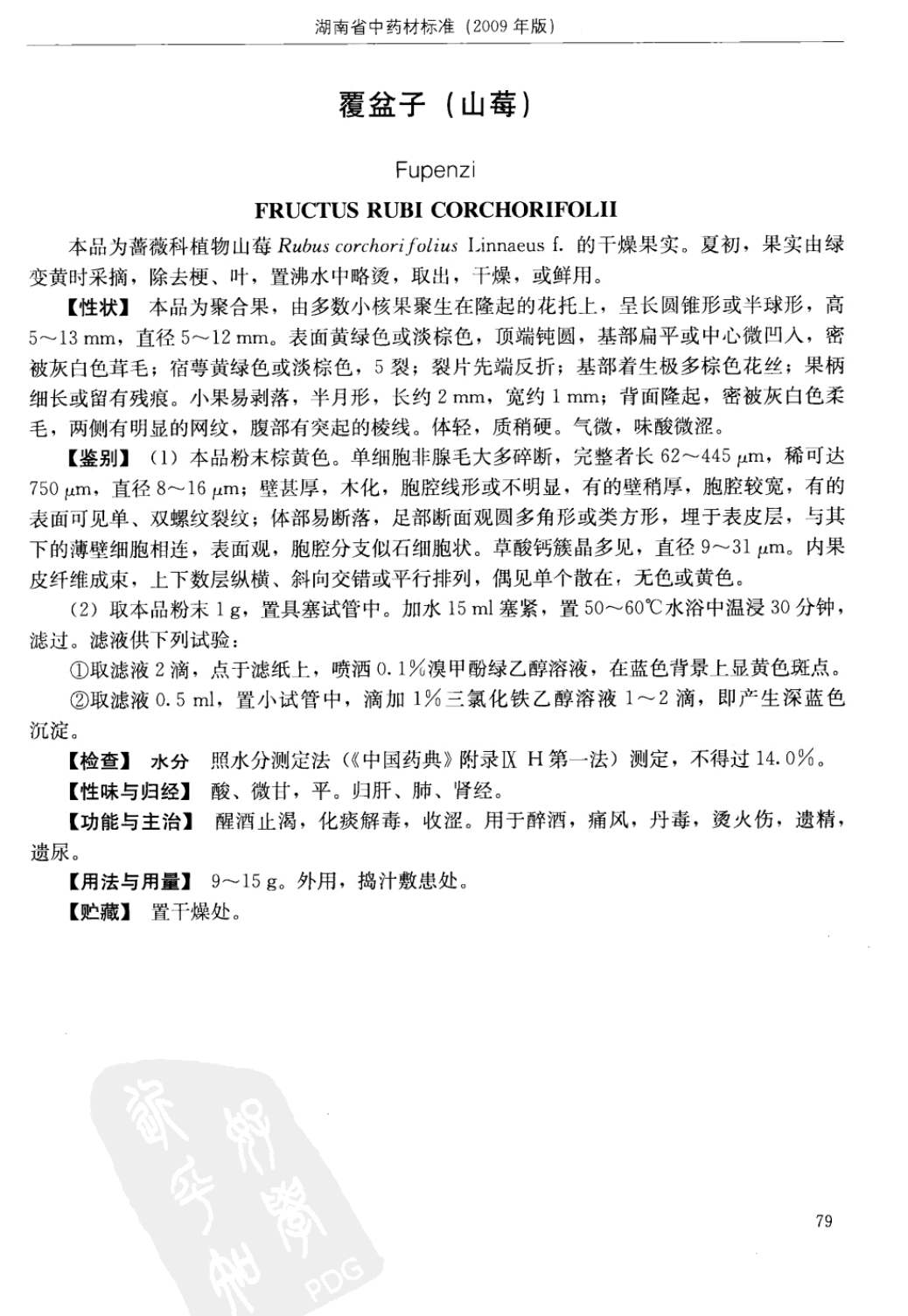 湖南省中药材质量标准 > 覆盆子(山莓)