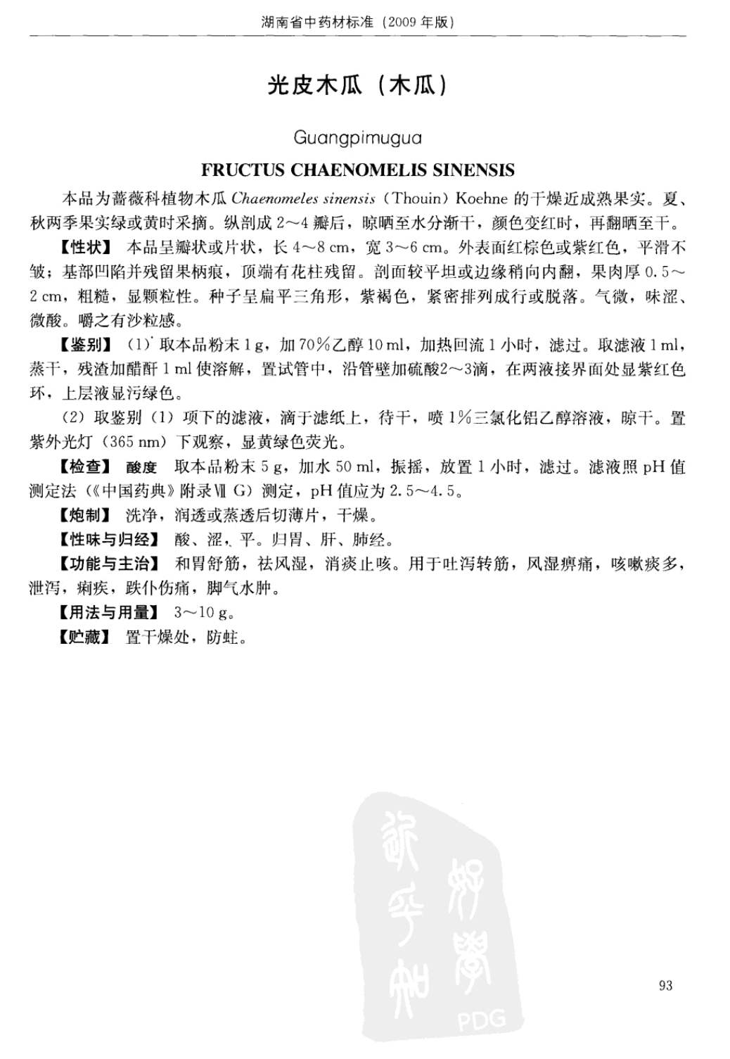 湖南省中药材质量标准 > 光皮木瓜(木瓜)