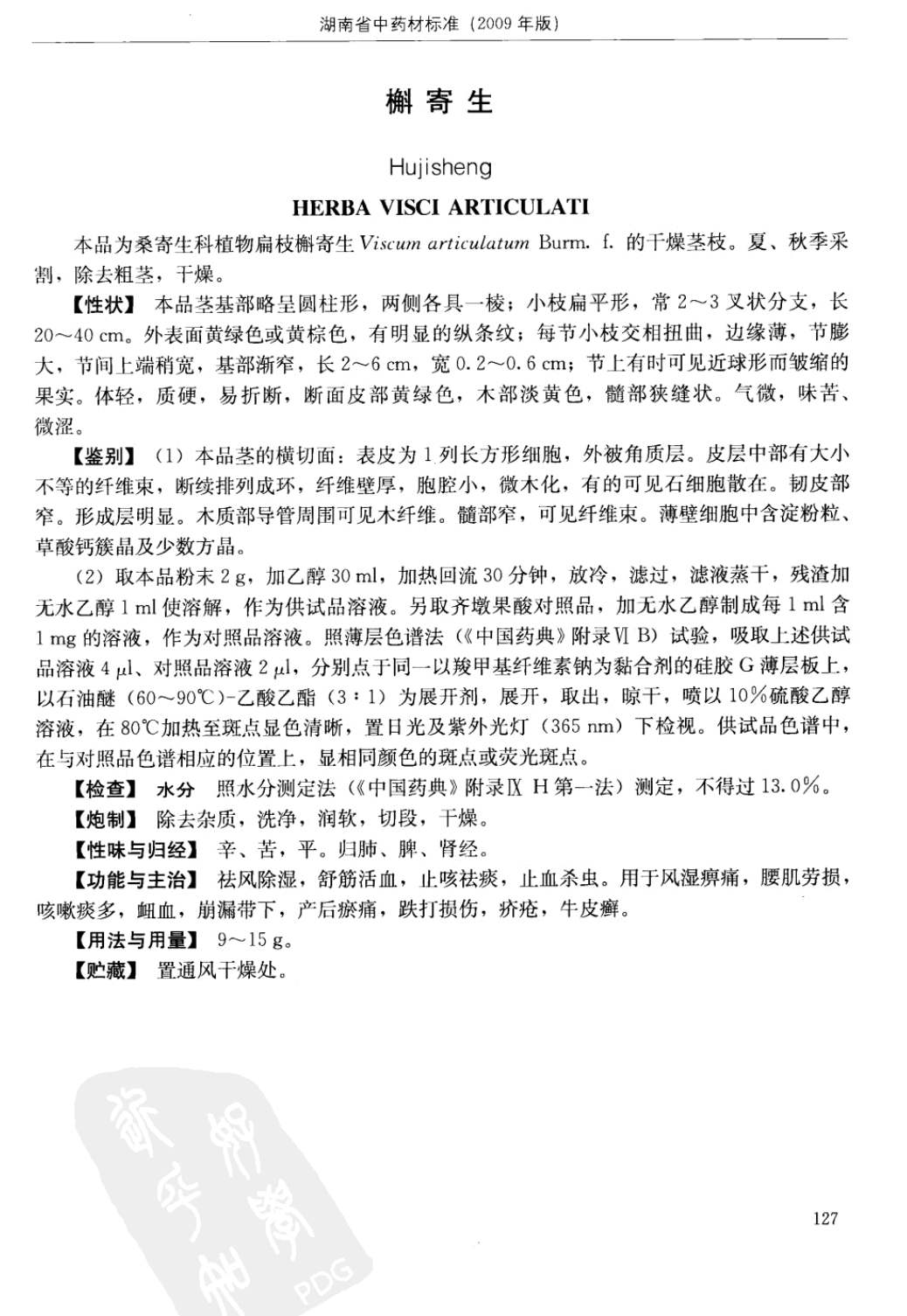 (湖南省中药材质量标准 - 2009年版)