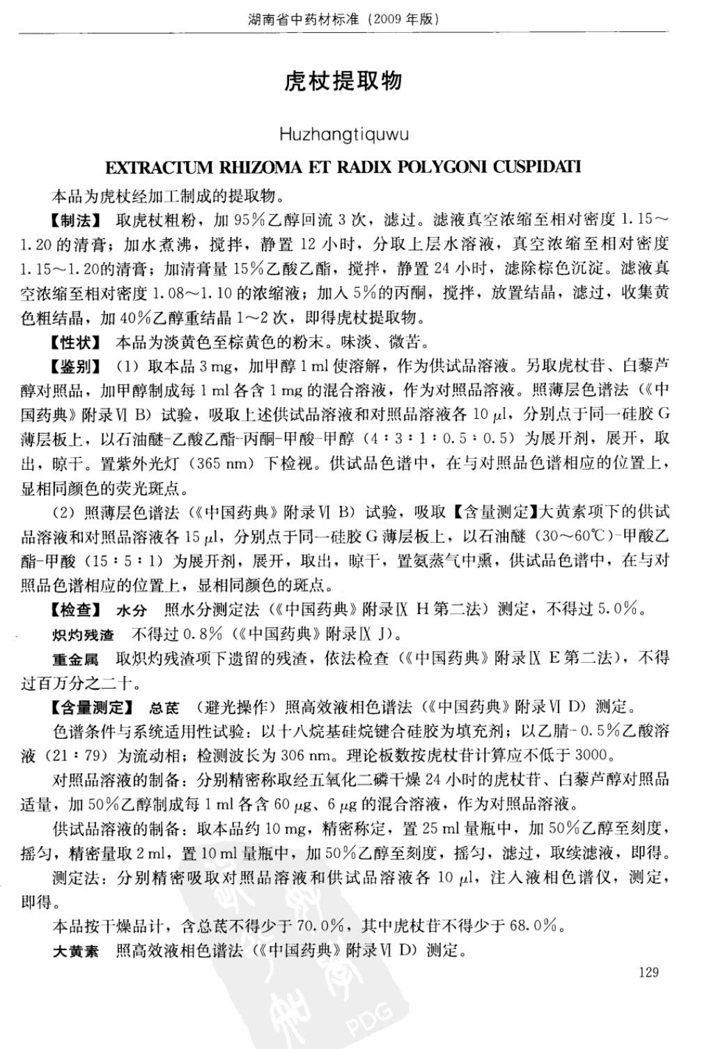 湖南省中药材质量标准 > 虎杖提取物