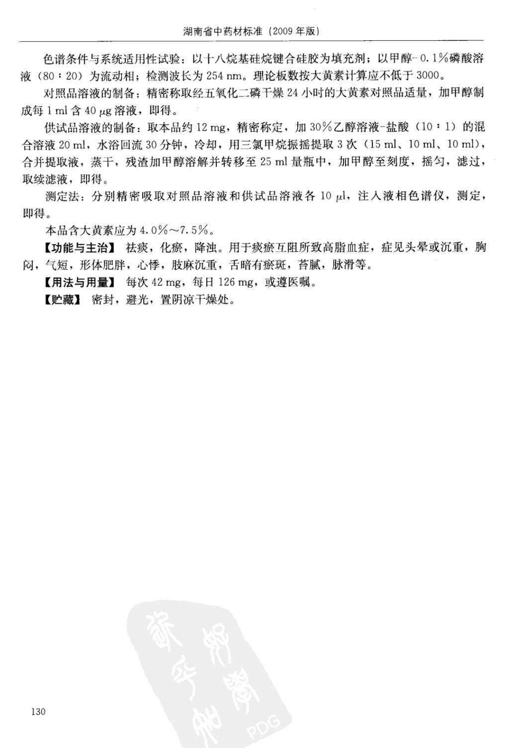 (湖南省中药材质量标准 - 2009年版)