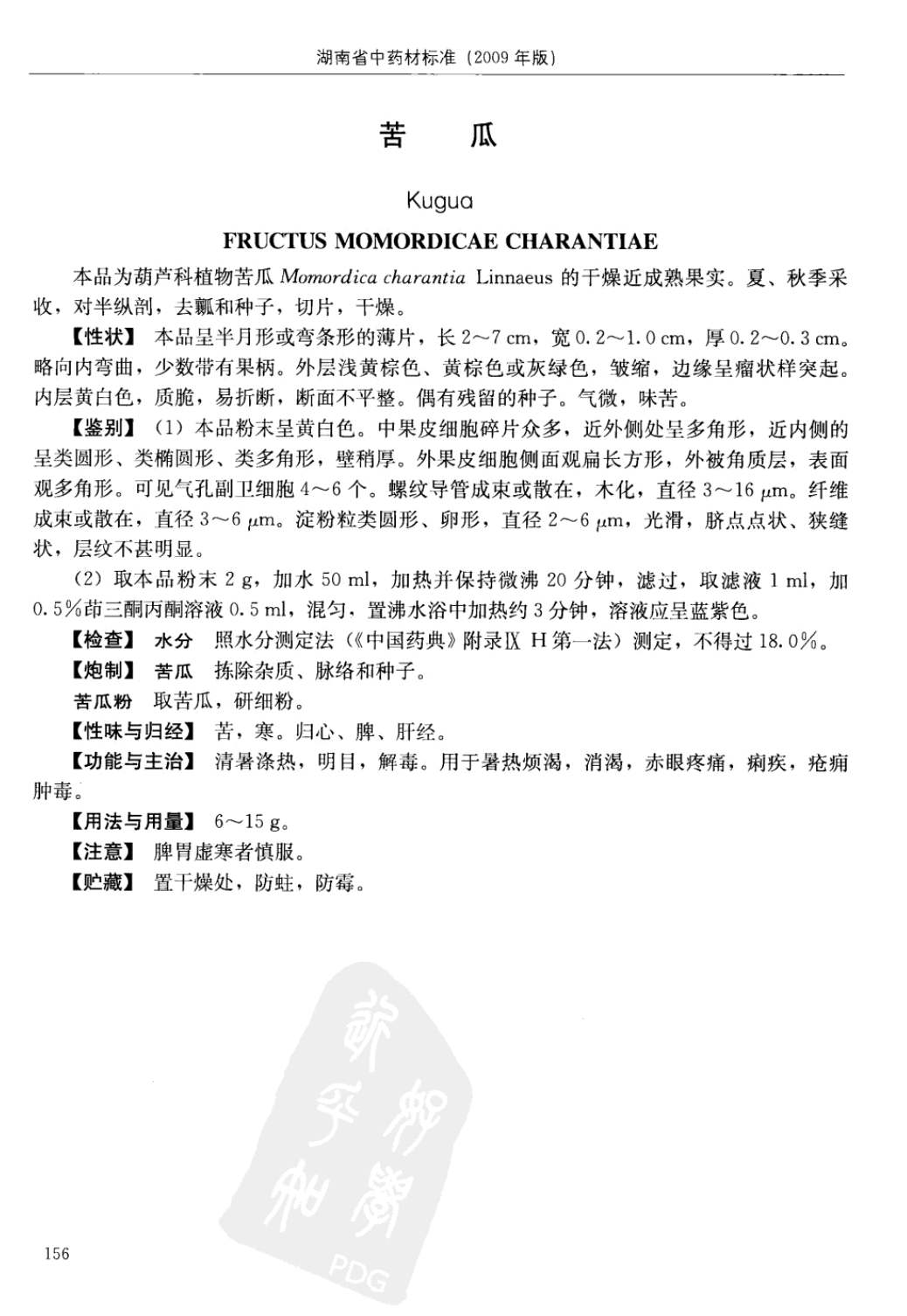 湖南省中药材质量标准 > 苦瓜
