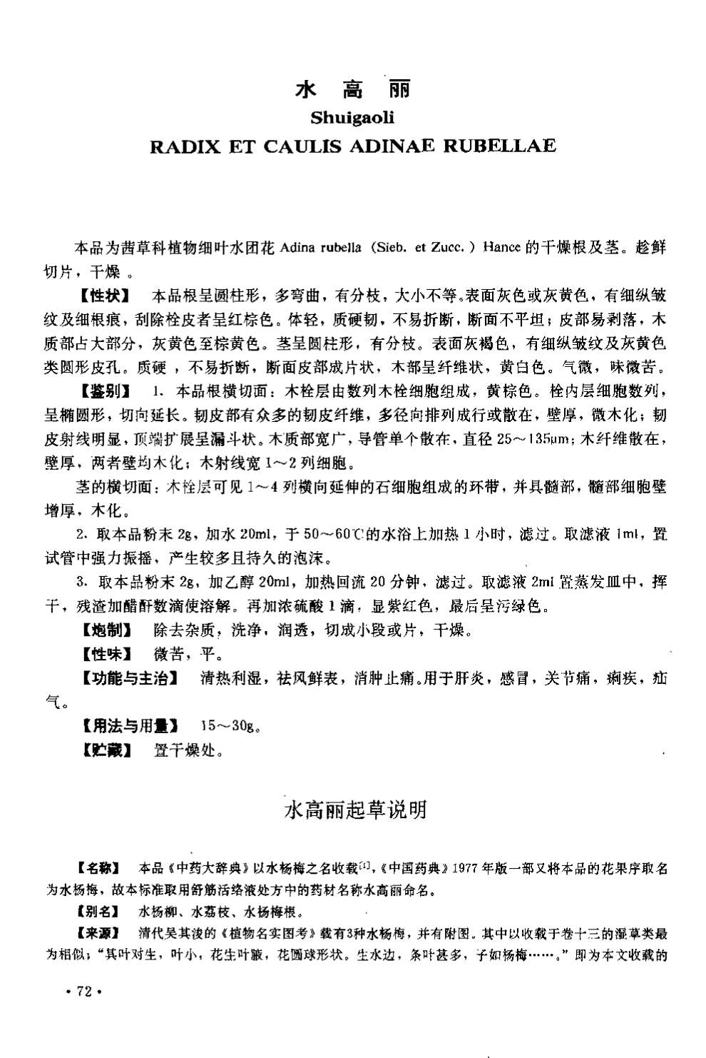 湖南省中药材质量标准 > 水高丽