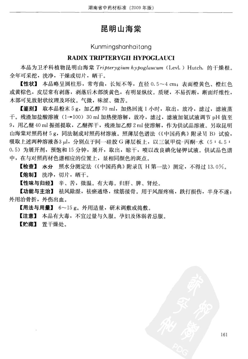湖南省中药材质量标准 > 昆明山海棠