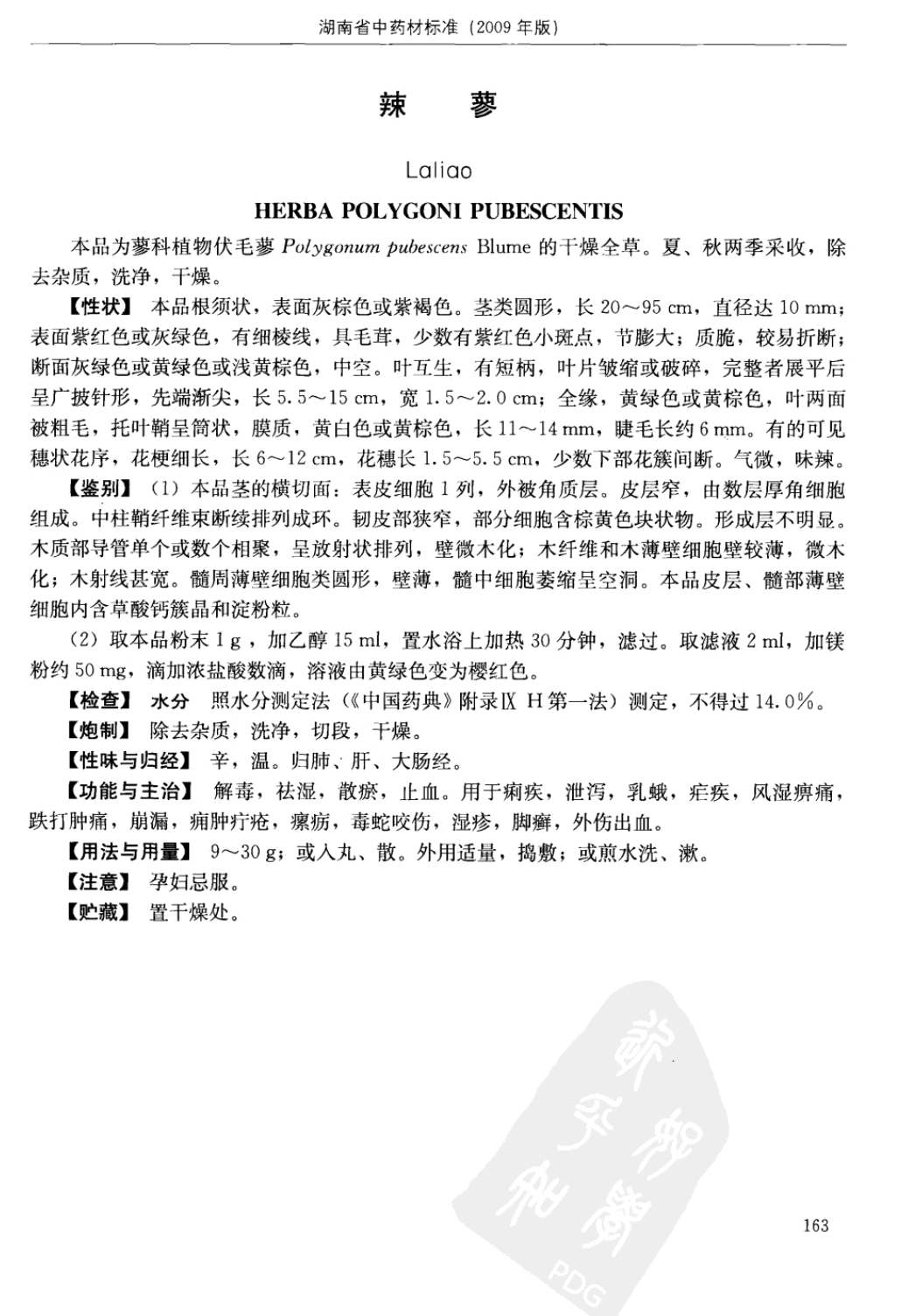 湖南省中药材质量标准 > 辣蓼