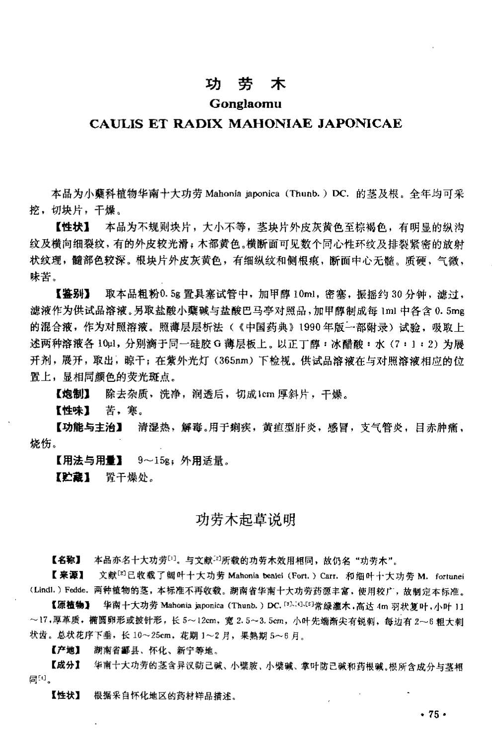 湖南省中药材质量标准 > 功劳木