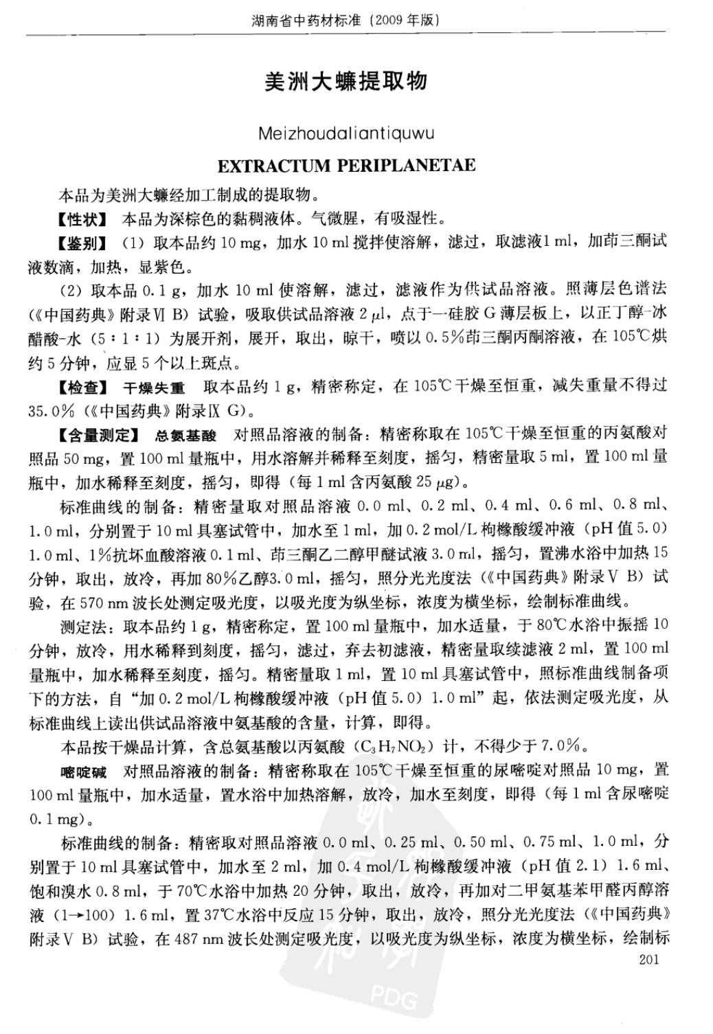 湖南省中药材质量标准 > 美洲大蠊提取物