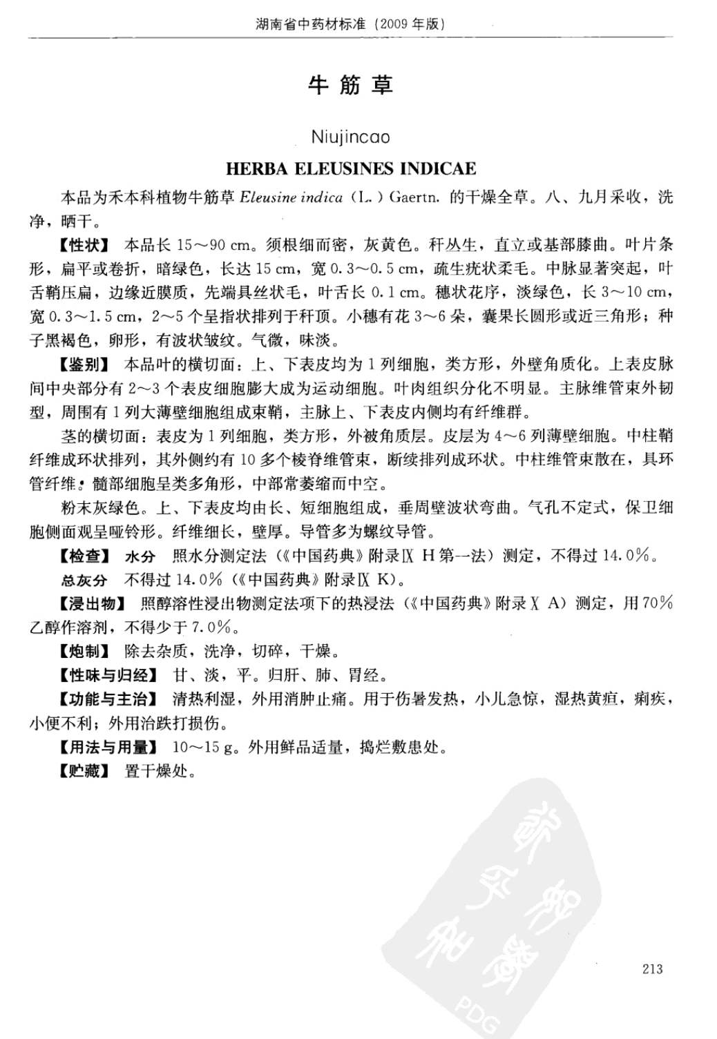 湖南省中药材质量标准 > 牛筋草
