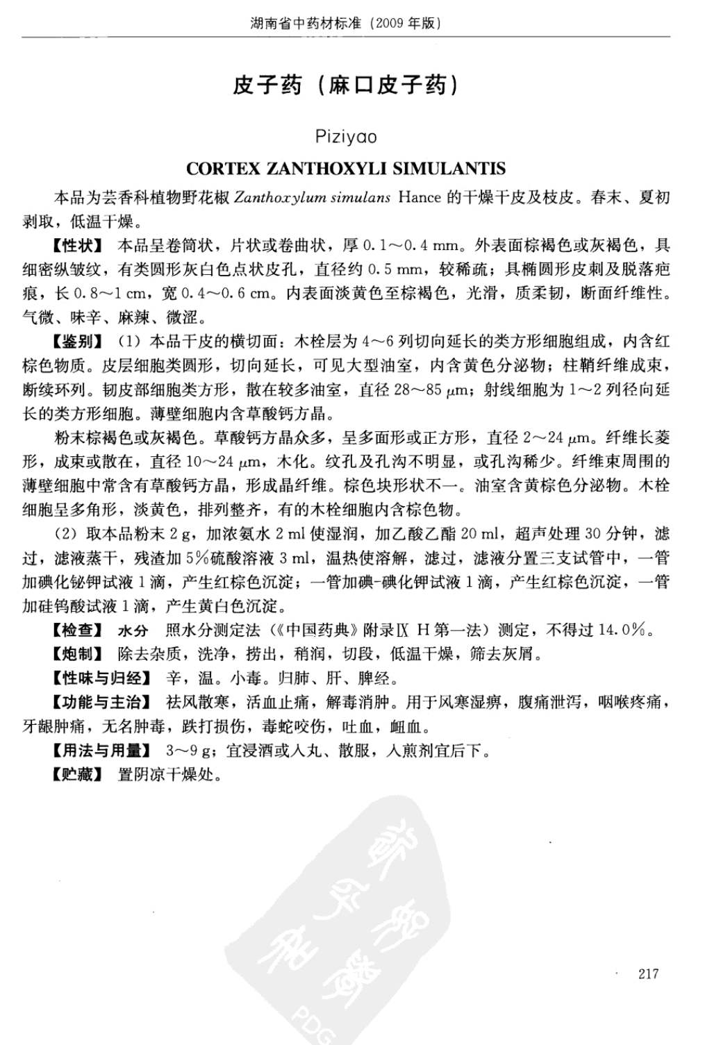 (湖南省中药材质量标准 - 2009年版)