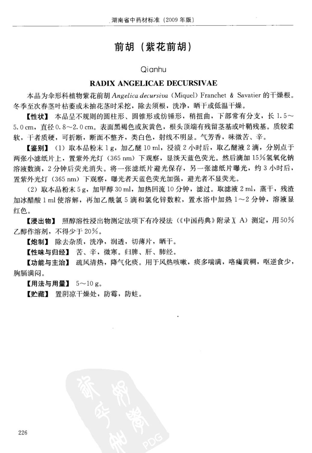 湖南省中药材质量标准 > 前胡(紫花前胡)