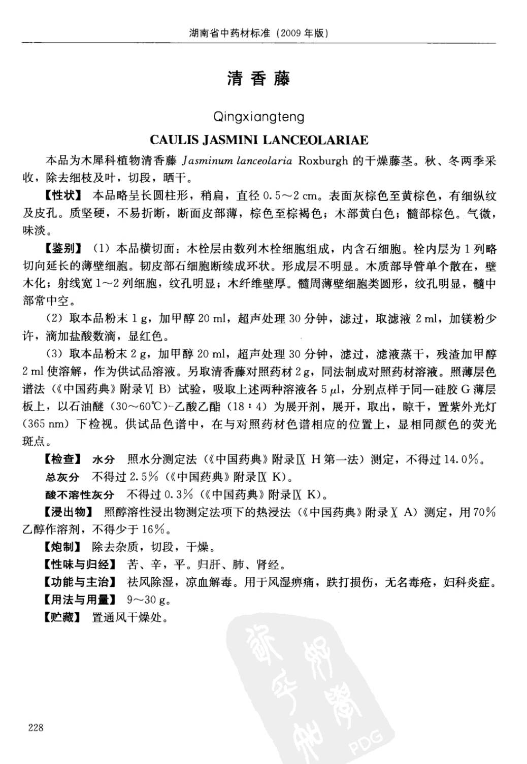 (湖南省中药材质量标准 - 2009年版)